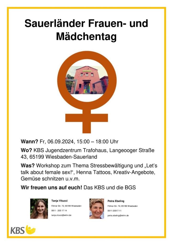 Unter anderem freuen wir uns über einen Workshop zum Thema Stressbewältigung vom Frauengesundheitszentrum SIRONA e.V. und einen Infostand von Wildwasser Wiesbaden e.V.