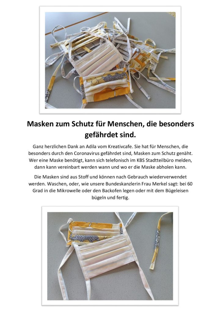 Wir verteilen Masken zum Schutz für Menschen, die besonders gefährdet sind Telefonnummer vom Stadtteilbüro: 0611-205170