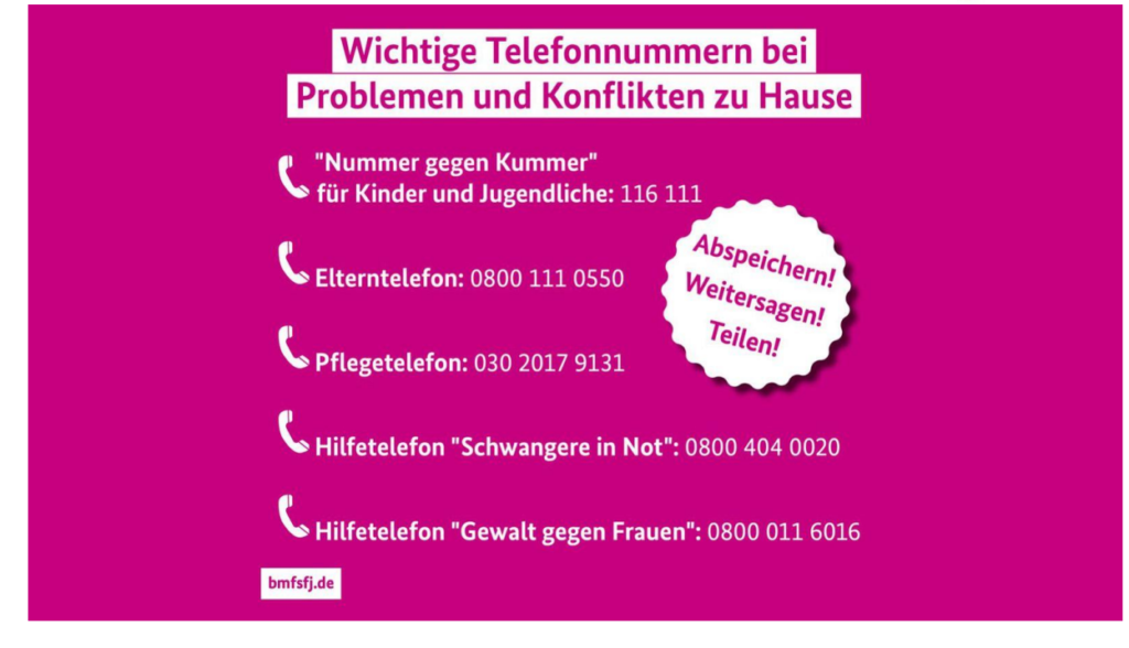 Wichtige Telefonnummern bei Problemen und Konflikten zu Hause