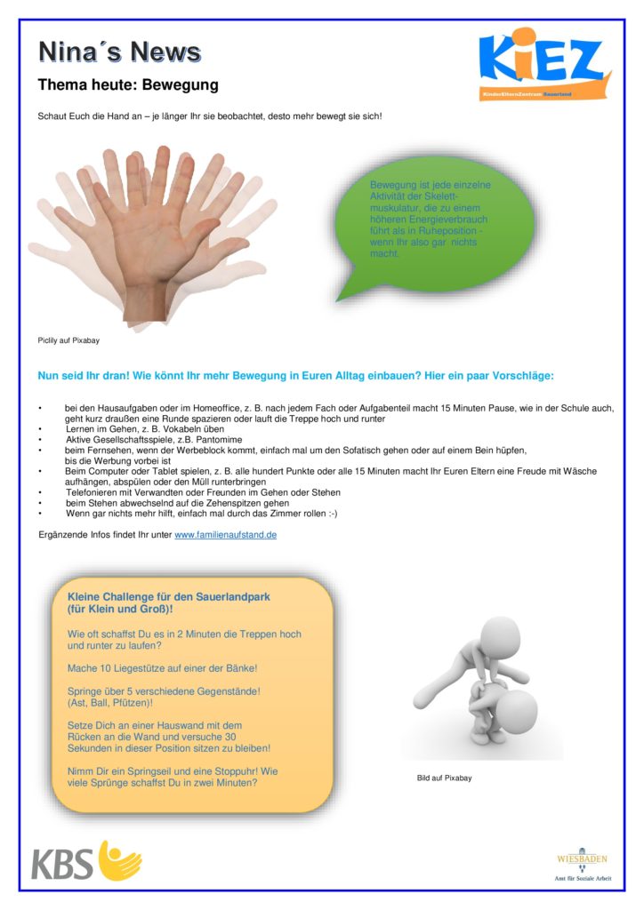 Solange das Elterncafé nicht stattfinden kann, gibt es hier regelmäßig Anregungen und Informationen für Euch unter der Rubrik „Ninas News“!