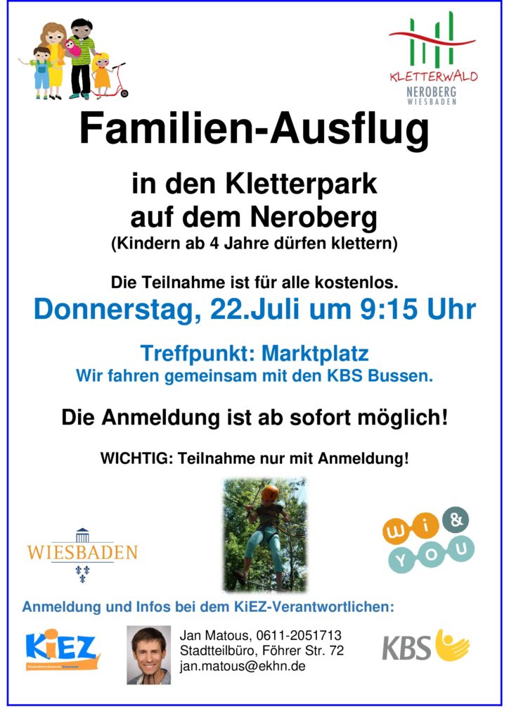 Kostenloser Ausflug am 22.Juli 2021 in den Kletterpark auf den Neroberg. Kinder ab 4 Jahre dürfen klettern! Action und Fun für Groß und Klein! Die Anmeldung ist notwendig.
