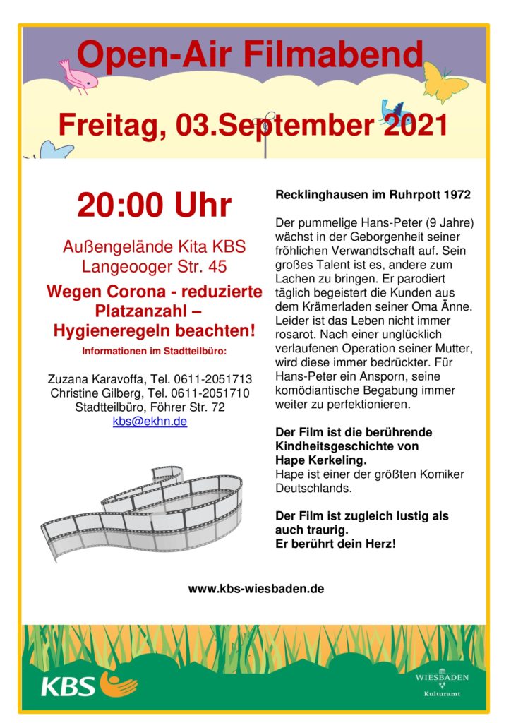 Recklinghausen im Ruhrpott im Jahr 1972 ist der Ort an dem dieser Film spielt. Der Film erzählt von der Kindheit des bekannten Komikers Hape Kerkeling. Lustig und traurig zugleich. Eintritt frei!